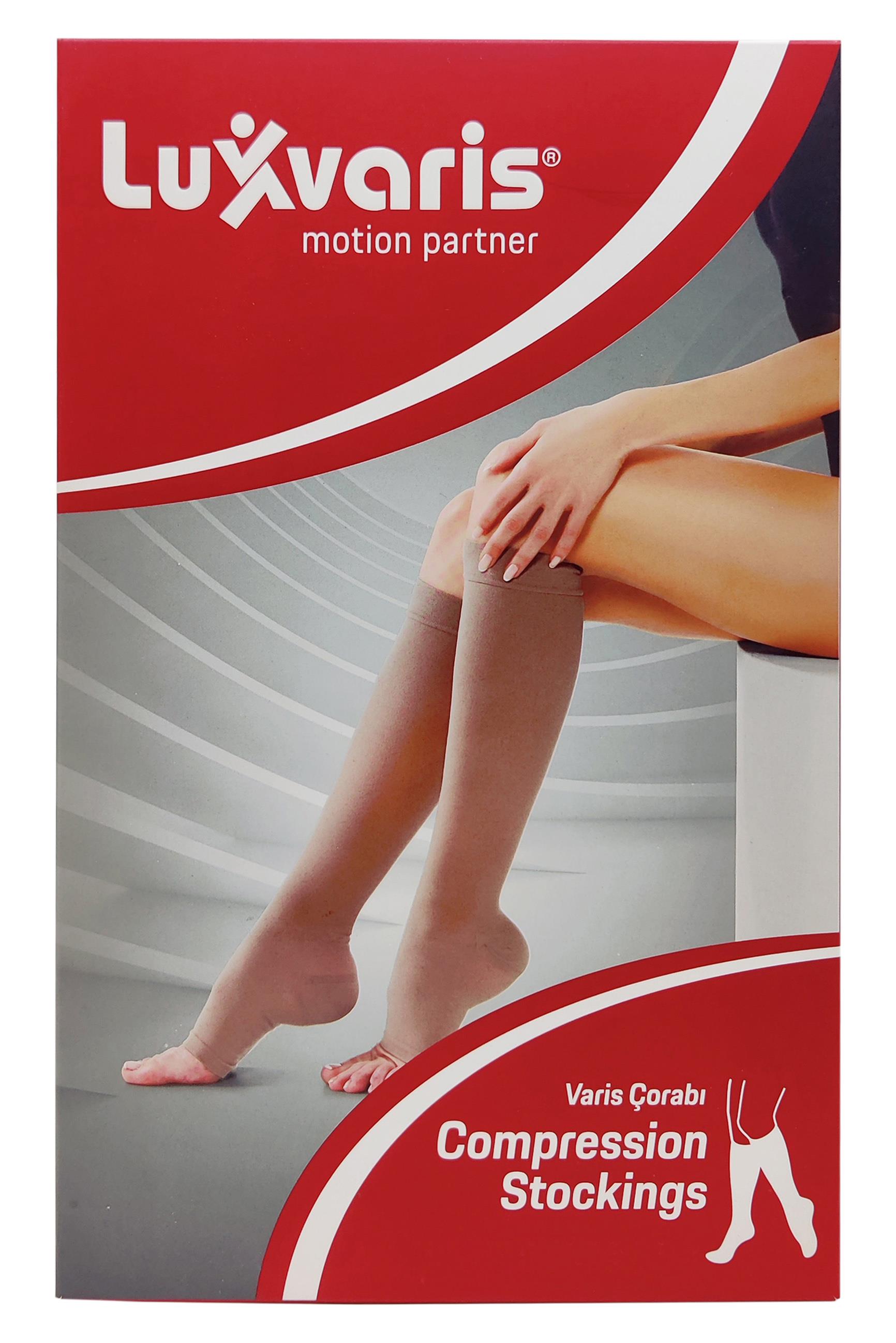 Luxvaris 808 Varis Çorabı Diz Altı Burnu Açık Orta Basınç Ten Rengi No 4 (37371)