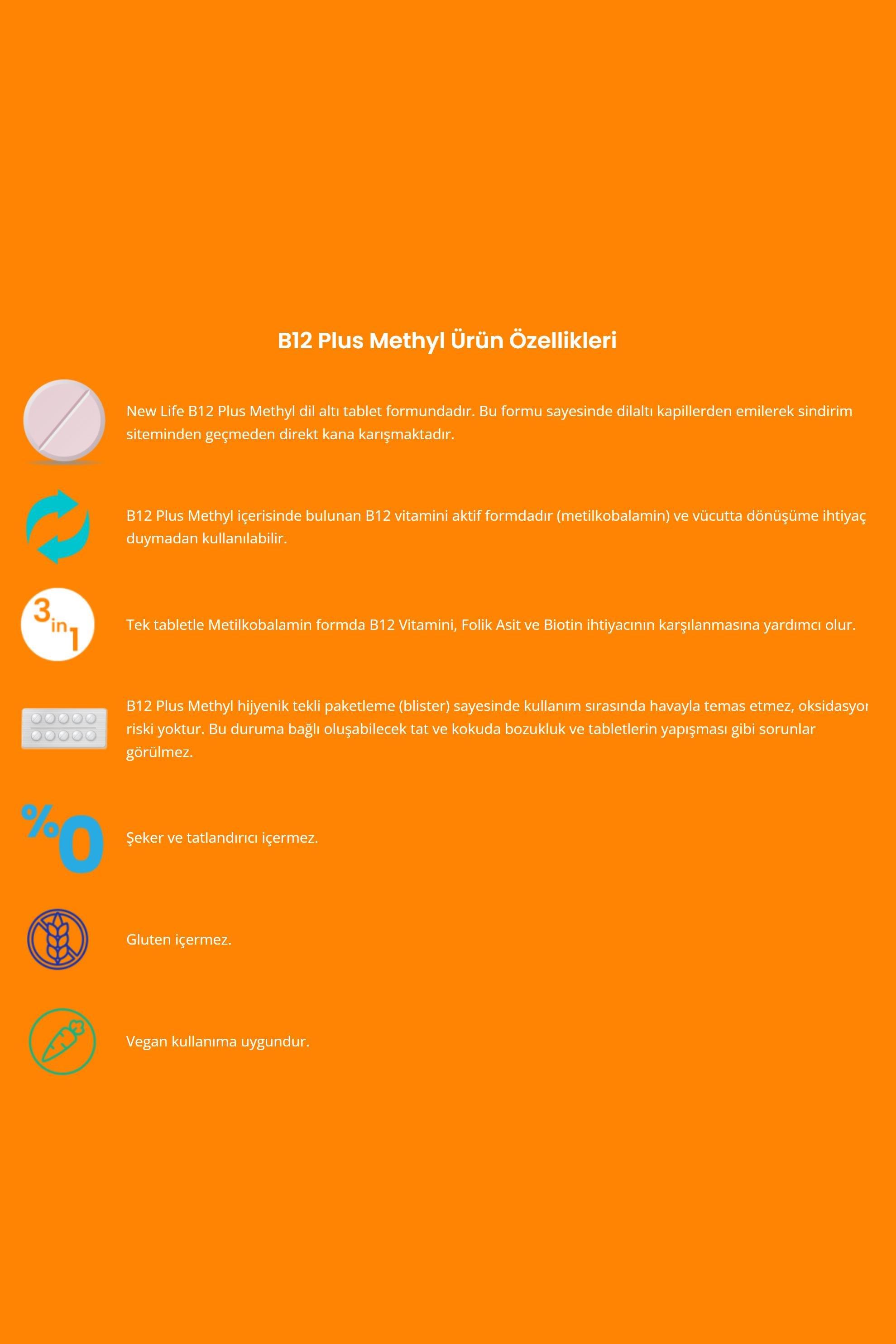 New Life Vitamin B12 Plus 30 Dilaltı Tablet - Folik Asit - Biotin Özellikleri