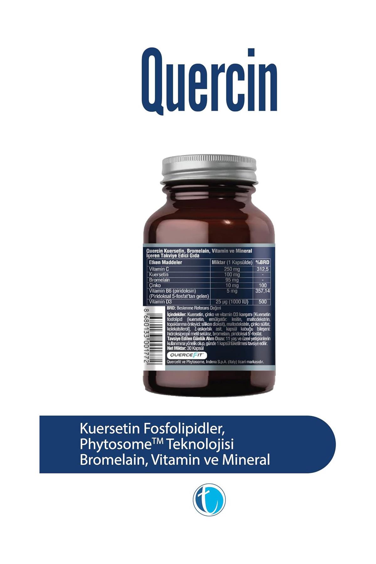Kuersetin, Bromelain, C vitamini, D vitamini, Çinko, Manganez ve destekleyici mineraller.
