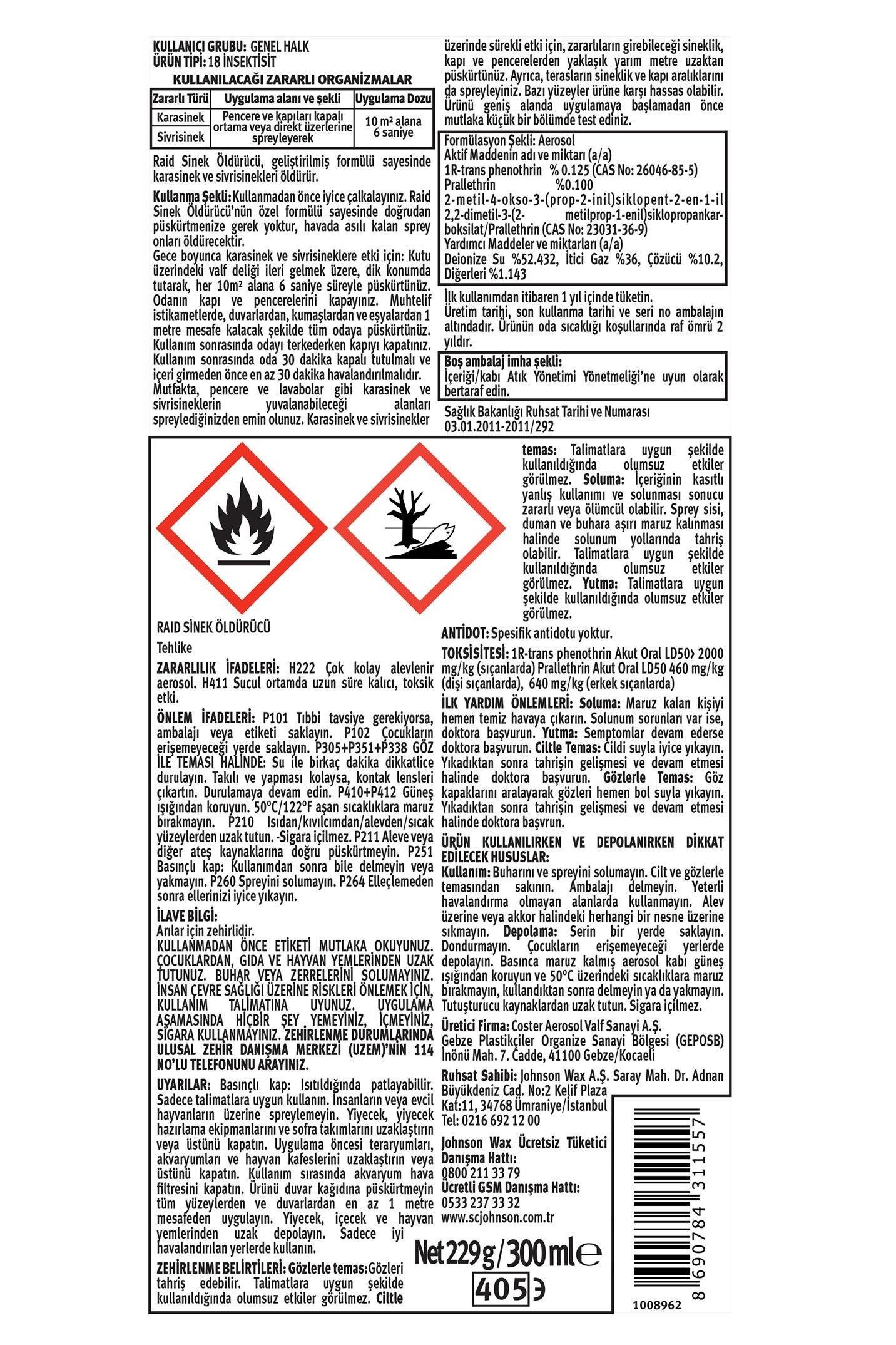 Raid Sinek Kovucu 2 in 1 300ml 3'lü (MF-45936-3)