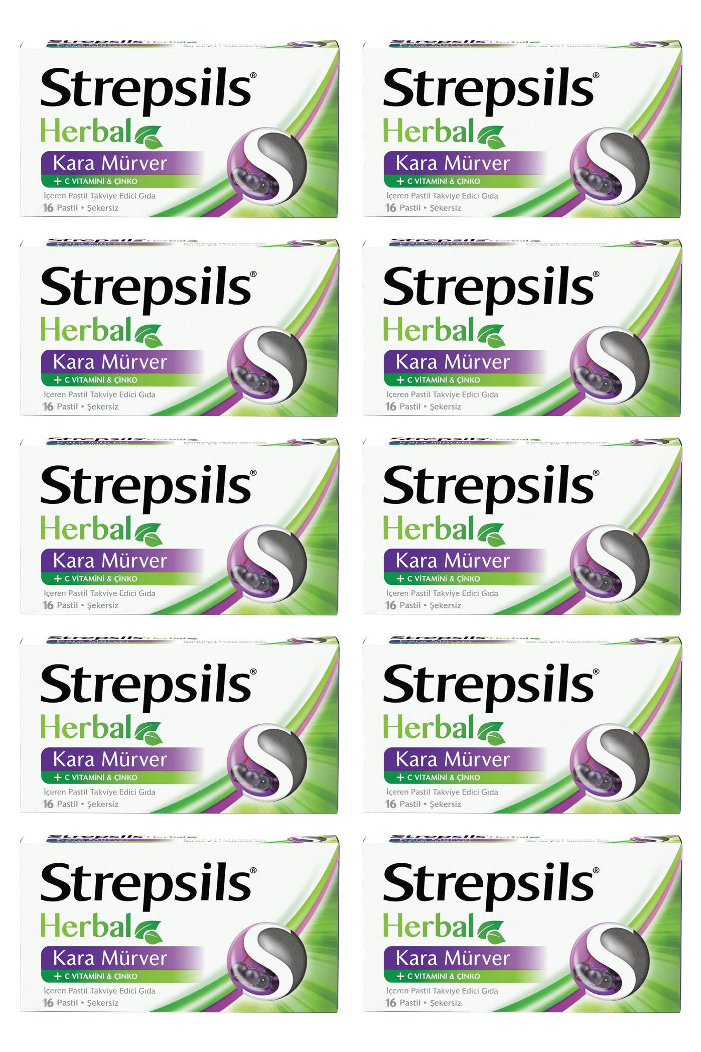 Strepsils Herbal Kara Mürver Vitamin C Çinko Pastil 16 Adet 10'lu (MF-76139-10)