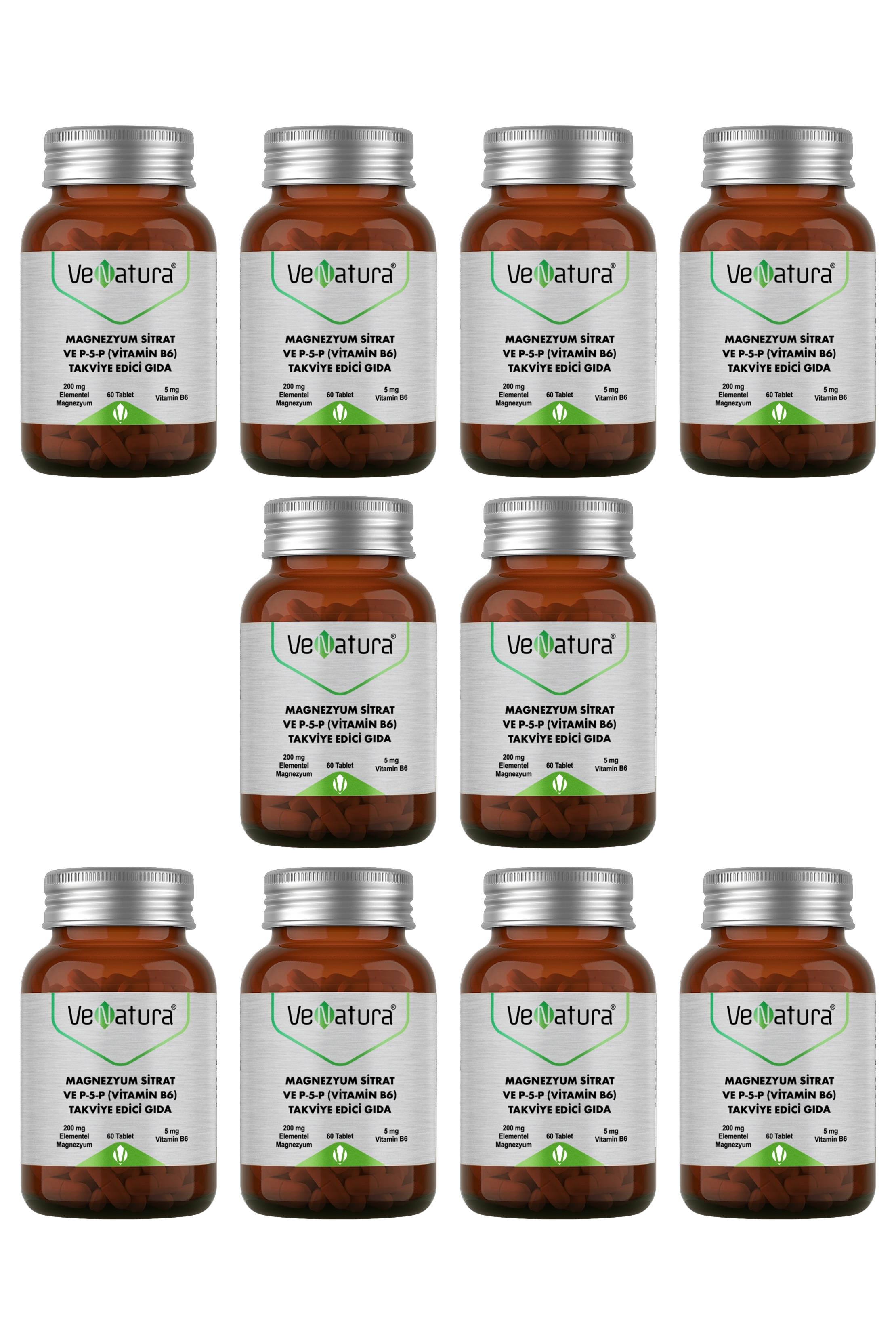 VeNatura Magnezyum Sitrat ve P-5-P (Vitamin B6), yüksek biyoyararlanıma sahip magnezyum sitrat formu ile aktif B6 vitamini (piridoksal-5-fosfat) içeren takviye edici gıdadır. 60 tabletlik ambalajda sunulur. Vejetaryen kullanıma uygun olup katkı, renklendirici ve koruyucu içermez.